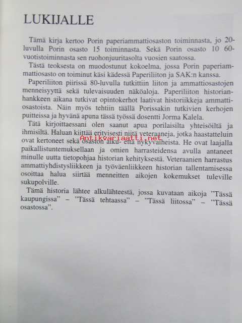 Viljanen Eero kirj., Paperiliiton Porin Osasto, 1995