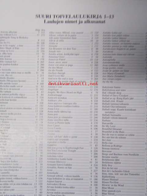 Suuri toivelaulukirja 1-13 sisällysluettelo - Laulujen nimet ja alkusanat