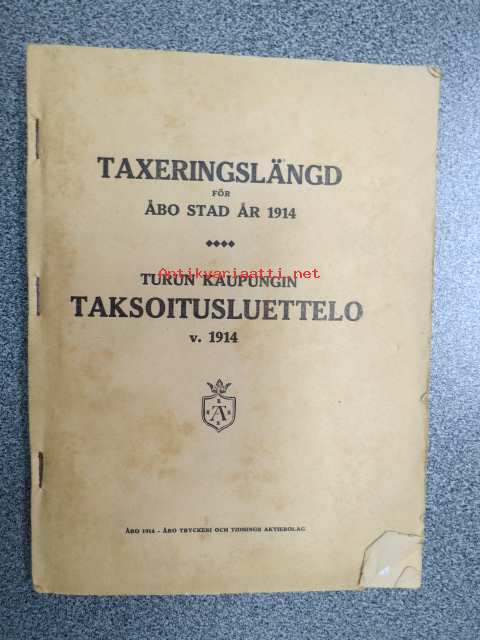 Turun kaupungin taksoitusluettelo v. 1914 - Taxeringslängd för Åbo stad år 1914 -verokalenteri
