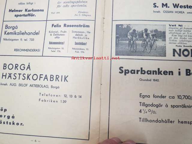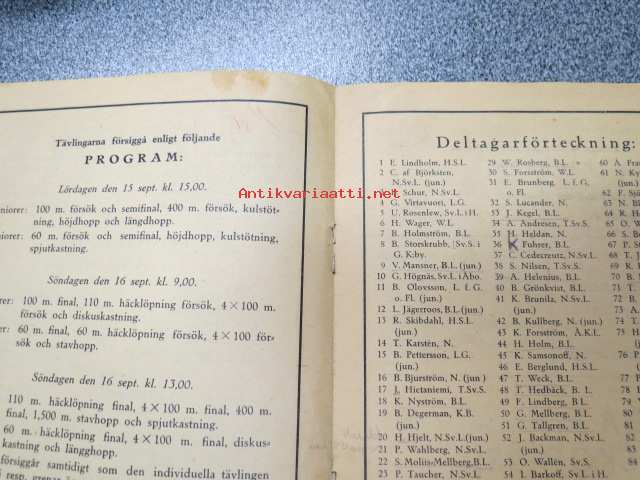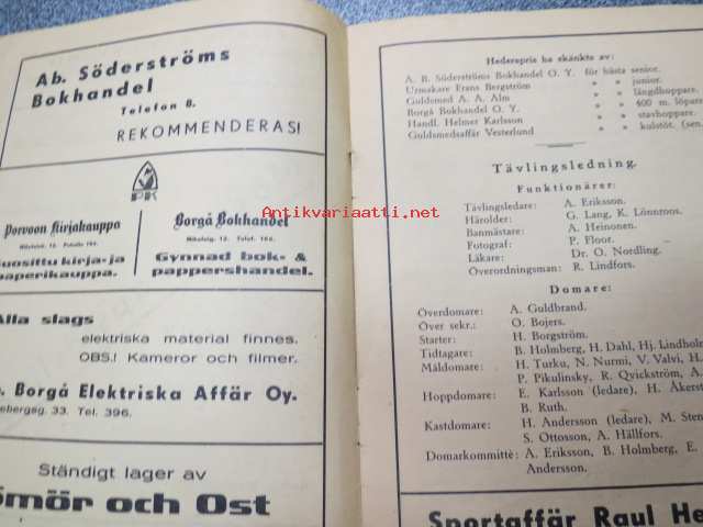 Svenska Finlands Skolidrottsförbunds Mästerskapstävlingar 1934 Borgå -programblad -käsiohjelma