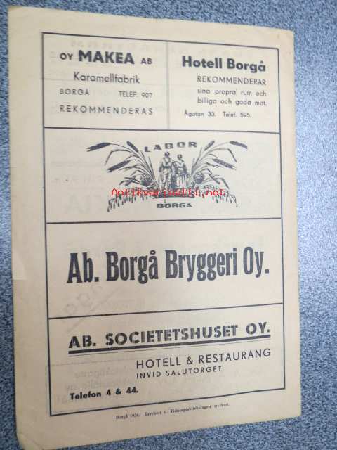| Saatavilla | 1 kpl | | Julkaisuvuosi | 1934 | | Sivuja | 8 | | Kunto | K2 | | Sidonta/painoasu | Pienpainate | | Kielet | Ruotsi |