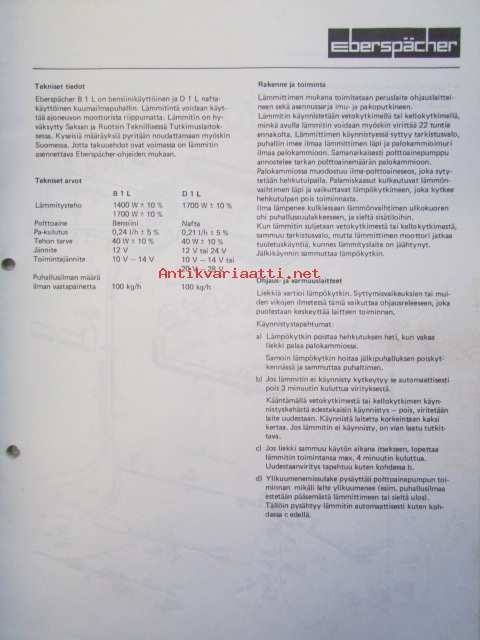 Eberspächer B 1 L, D 1 L Lämmittimien asennusohjeet