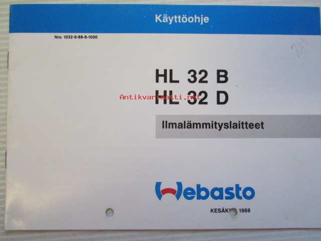 Webasto Ilmalämmityslaitteet HL 32 B, HL 32 D nr 1032-9-88-6-1000 -käyttöohjeet
