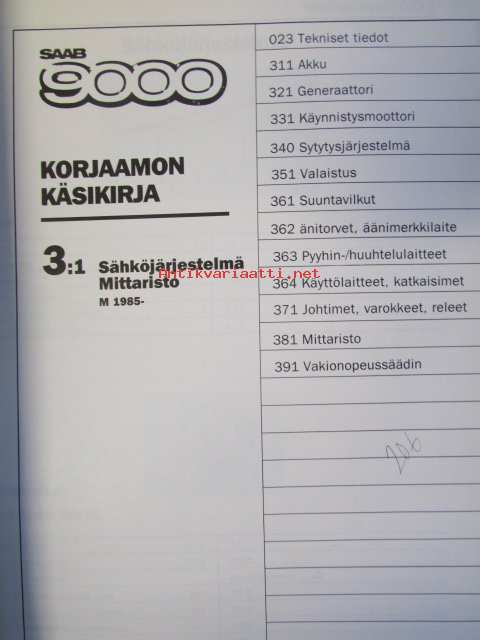 Saab 9000 kori 8, M 1985--> - Korjaamon käsikirja