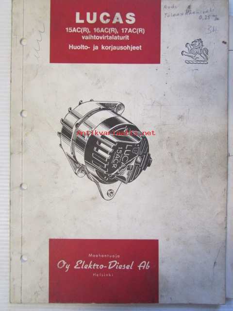Lucas 15AC(R), 16AC(R), 17AC(R) vaihtovirtalaturit - Huolto- ja korjausohjeet