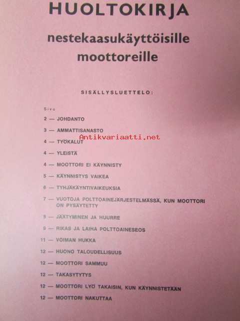 BEAM Huoltokirja nestekaasukäyttöisille moottoreille