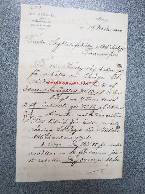 Joh. Askolin, Porvoo, 19.3.1900 -asiakirja, allekirjoitus Joh. Askolin