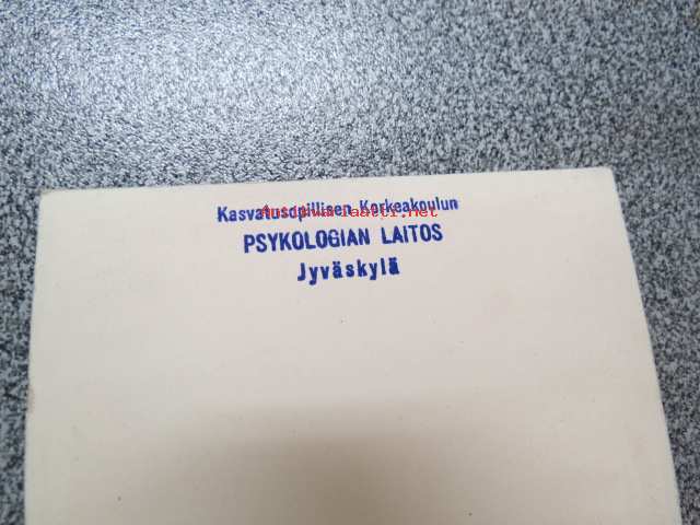 Testikorttipari hahmotukseen - "Kasvatusopillisen Korkeakoulun Psykologian laitos, Jyväskylä" -leimattu