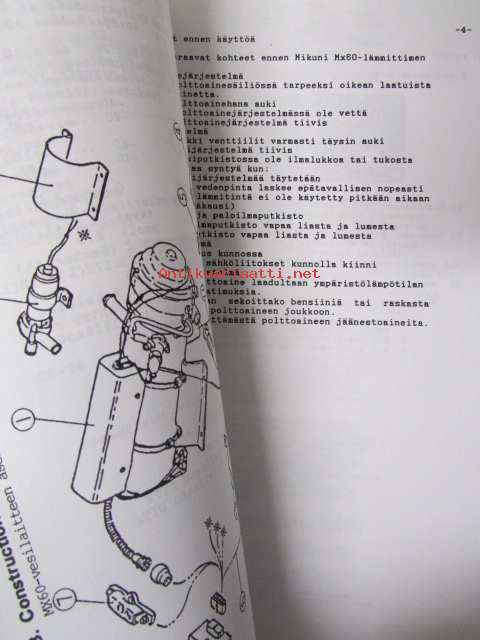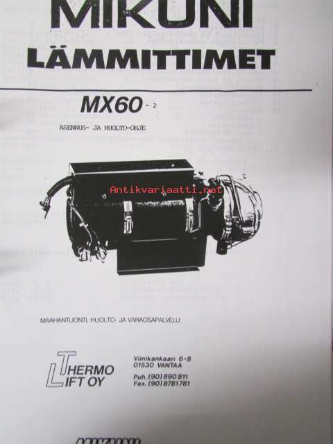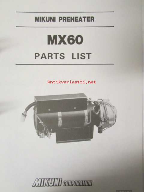 Mikuni Lämmittimet MX 60 - Asennus- ja huolto-ohje (suomenkielinen) / Mikuni Preheater MX 60 Service Manual - huolto-ohjekirja (englanninkielinen) / Mikuni Preheater MX 60 Parts List (englanninkielinen)21 x 30 cm.