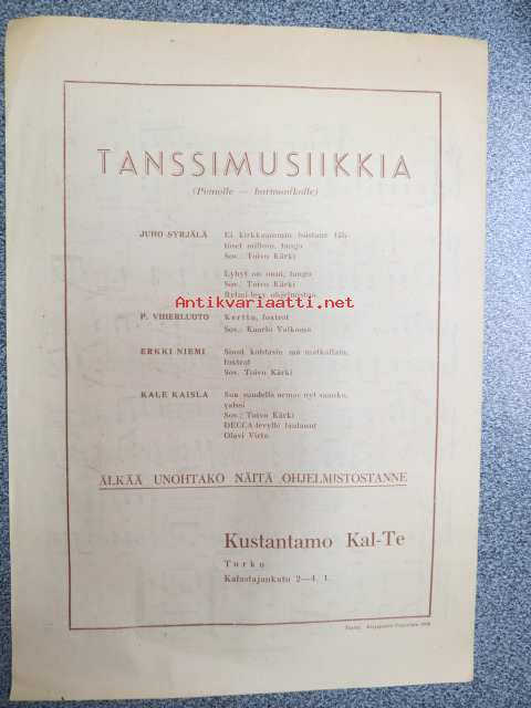 Juho Syrjälä, Toivo Kärki, Kustantamo Kal-Te, 1948