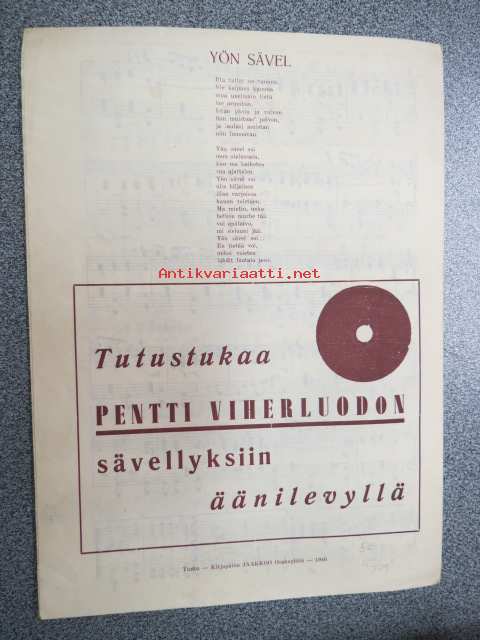 Pentti Viherluoto, Harry Etelä, Kaarlo Valkama, Soitinliike Laine, 194623 x 30 cm.