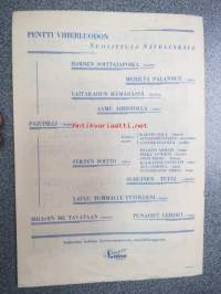 | Saatavilla | 1 kpl | | Julkaisuvuosi | 19?? | | Sivuja | 4 | | Kunto | K2 | | Sidonta/painoasu | Pienpainate | | Kielet | Suomi |