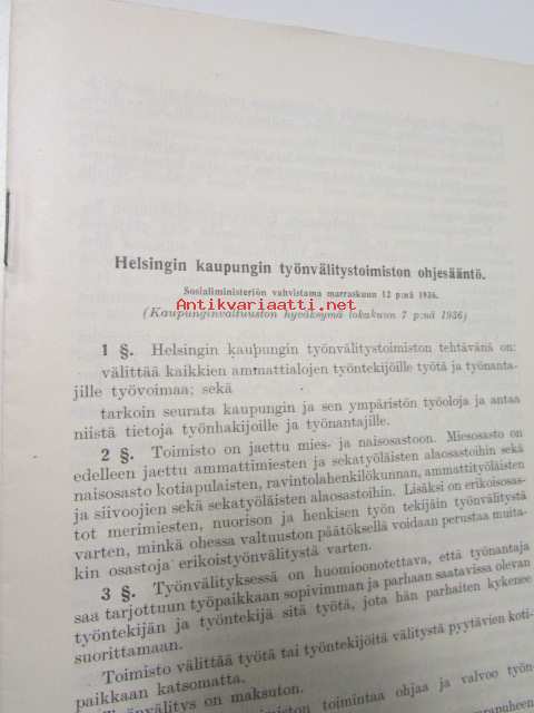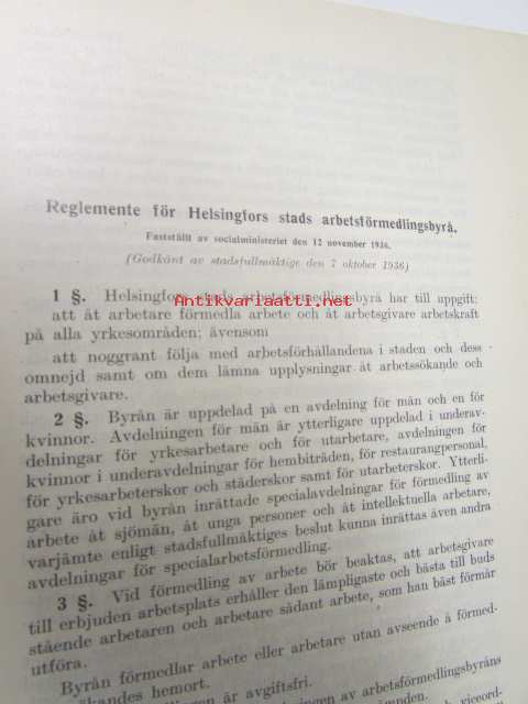 Helsingin kaupungin työnvälitystoimiston ohjesääntö / Reglemente för Helsingfors stads arbetsförmedlingsbyrå