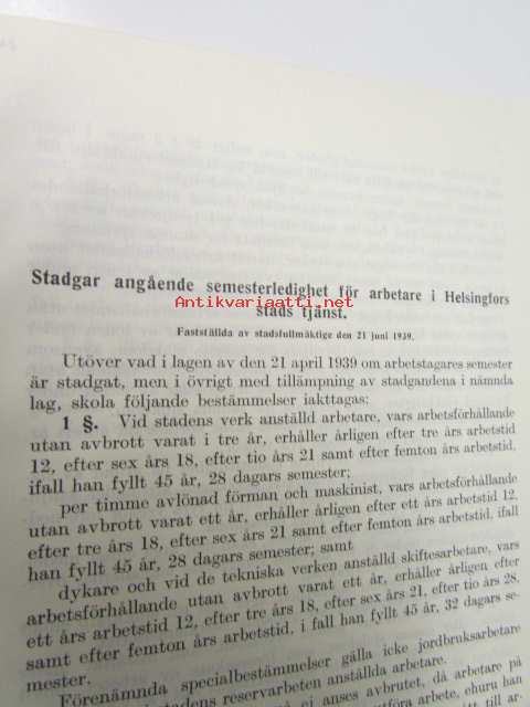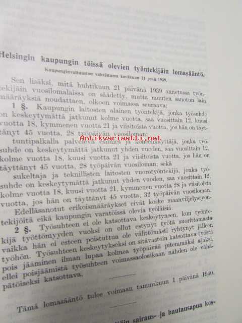 Helsingin kaupungin töissä olevien työntekijäin lomasääntö / Stadgar angående semesterledighet för arbetare i Helsingfors stads tjänst