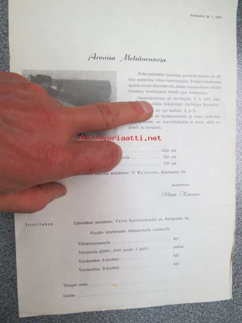 Nestevärivasara (puunleimaukseen) -myyntiesite