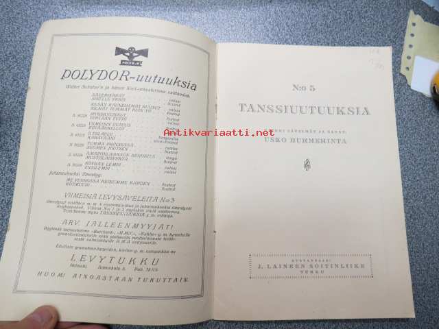 Usko Hurmerinta tanssiuutuuksia nr 5 -levy- ja tanssiuutuudet / iskusävelmät