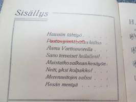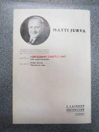 | Saatavilla | 1 kpl | | Julkaisuvuosi | 1933 | | Sivuja | 16 | | Kunto | K2 | | Sidonta/painoasu | Nidottu (pehmeäk.) | | Kielet | Suomi |