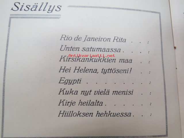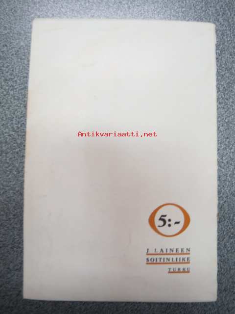 | Saatavilla | 1 kpl | | Julkaisuvuosi | 1934 | | Sivuja | 16 | | Kunto | K2 | | Sidonta/painoasu | Nidottu (pehmeäk.) | | Kielet | Suomi |