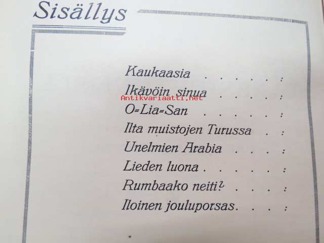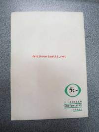 | Saatavilla | 1 kpl | | Julkaisuvuosi | 1932 | | Sivuja | 16 | | Kunto | K2 | | Sidonta/painoasu | Nidottu (pehmeäk.) | | Kielet | Suomi |