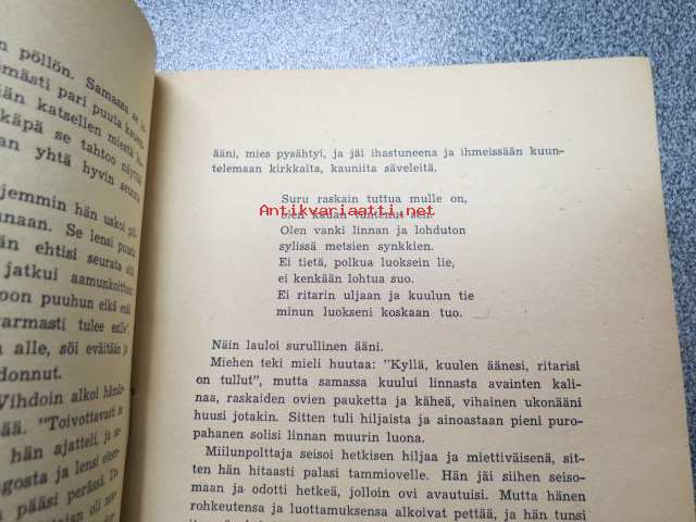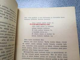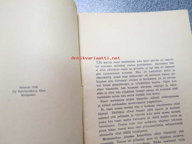 | Saatavilla | 1 kpl | | Julkaisuvuosi | 1948 | | Sivuja | 32 | | Painos | 1. | | Kunto | K2 | | Sidonta/painoasu | Nidottu (pehmeäk.) | | Kielet | Suomi |