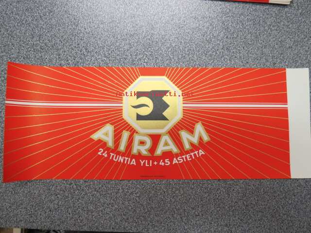Airam termospullon tuote-etiketti punainen, vuodelta 1936, käyttämätön