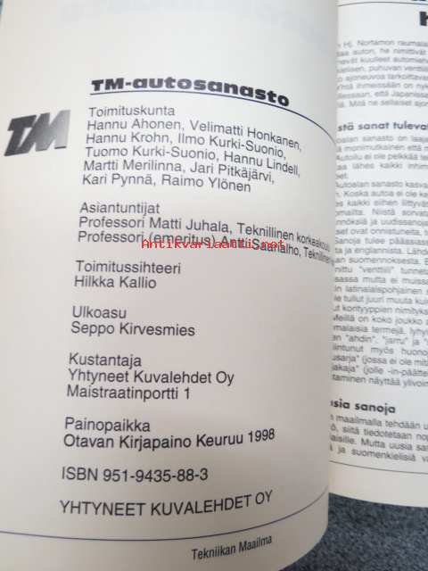 Pitkäjärvi Jari, Merilinna Martti, Lindell Hannu, Kurki-Suonio Tuomo, Kurki-Suonio Ilmo, Krohn Hannu, Honkanen Velimatti, Ahonen Hannu, Pynnä Kari, Ylönen Raimo, Yhtyneet Kuvalehdet Oy, 199815 x 21 cm.
