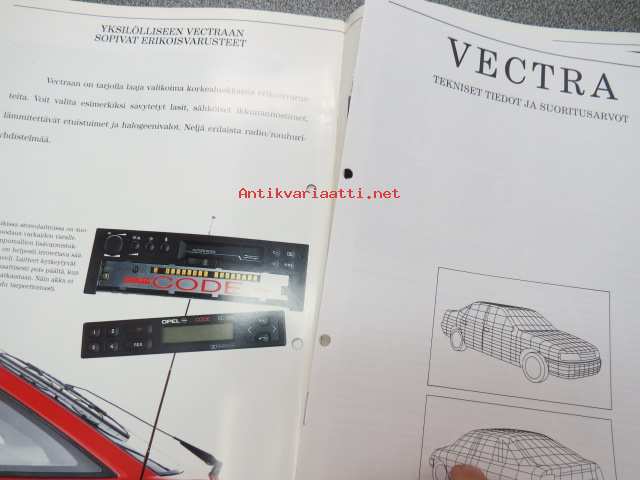 Opel Vectra 1990 -myyntiesite + tekniset tiedot