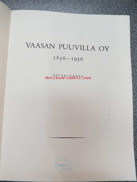 Oscar Nikula, Vaasan Puuvilla Oy, 195619 x 24 cm.