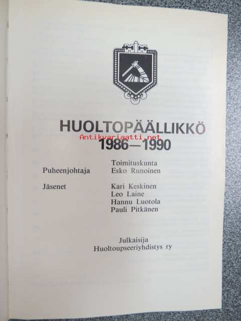 Huoltopäällikkö 1986-1990 - Huoltoupseeriyhdistyksen julkaisusarja