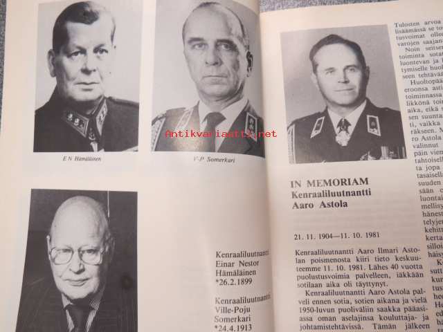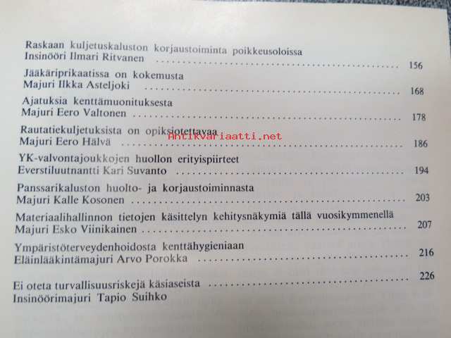 | Saatavilla | 1 kpl | | Julkaisuvuosi | 1985 | | Sivuja | 233 | | Painos | 1. | | Kunto | K2 | | Nimikirjoitus revitty | | Sidonta/painoasu | Kuvitettu kovakantinen | | ISBN | 951-99646-9-X | | Kielet | Suomi |