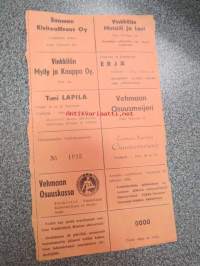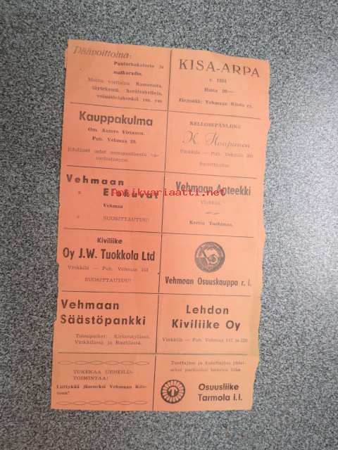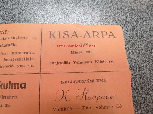 Vehmaan Kiisto Kisa-arpa nr 1035 -arpalippu