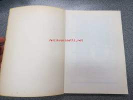 | Saatavilla | 1 kpl | | Julkaisuvuosi | 1957 | | Sivuja | 194 | | Painos | 1. | | Kunto | K3 | | Sidonta/painoasu | Nidottu (pehmeäk.) | | Kielet | Suomi |
