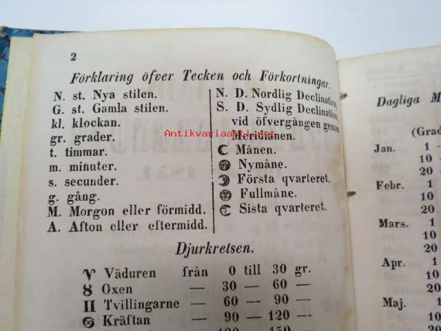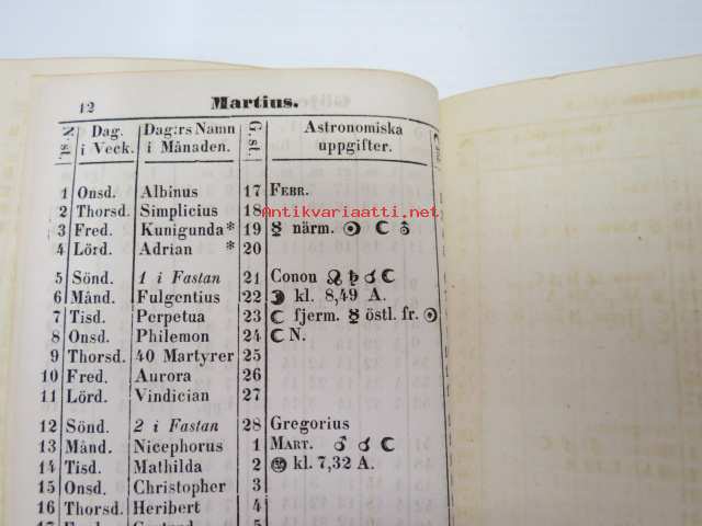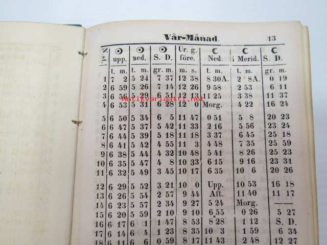 Finlands Stats-Kalender för år 1854, till Helsingfors horizont -valtiokalenteri, jossa mm. almanakka, "Turkarnes Kalender", Dagliga medelvärmen i Helsingfors,