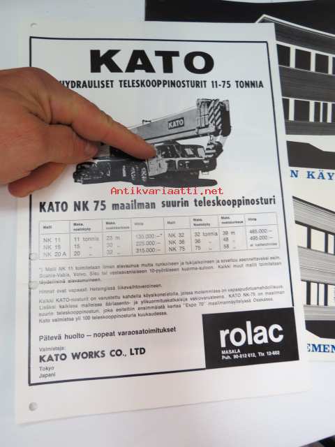 Kato täyshydrauliset teleskooppinosturit (hydraulipuomiset) 11-75 tonnia / Kato NK 75 autonosturi -myyntiesite
