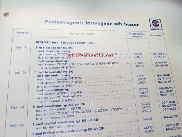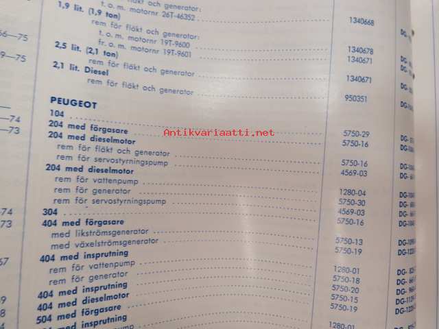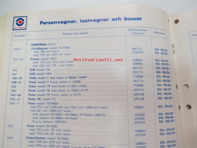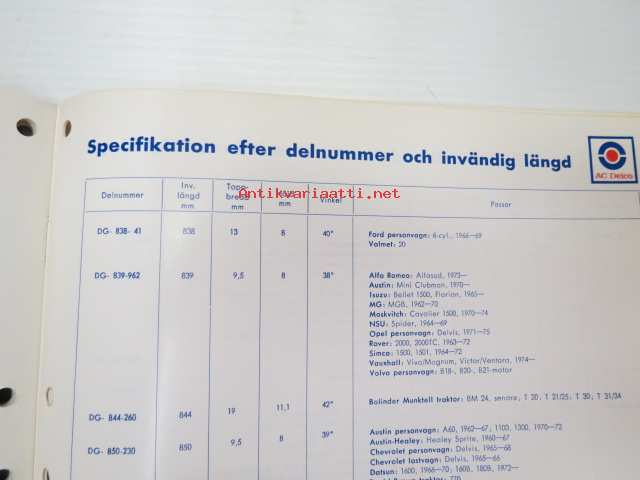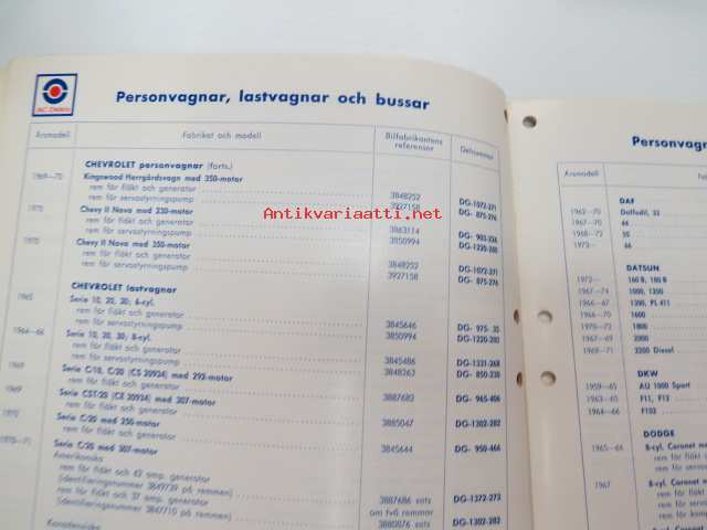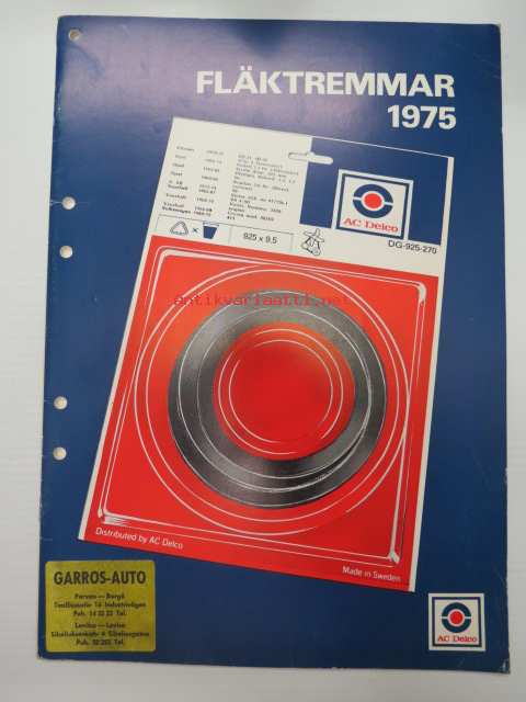 AC Delco Fläktremmar 1975 katalog -luettelo