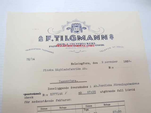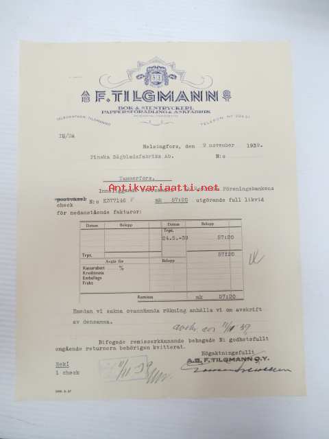 Ab F. Tilgmann Oy, Helsingfors 9.11.1939 -liikekirje