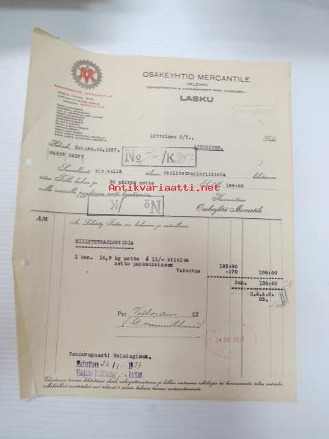 Osakeyhtiö Mercantile, Helsinki 22.7.1937 -liikekirje