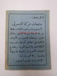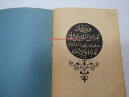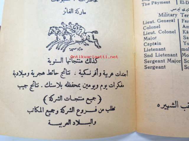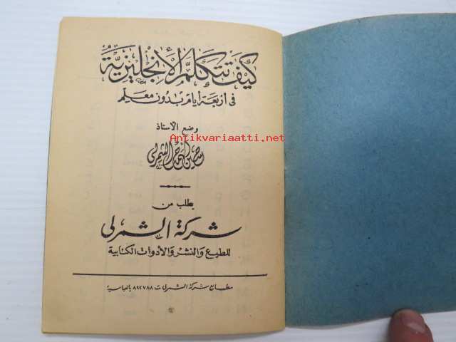 | Saatavilla | 1 kpl | | Julkaisuvuosi | 19?? | | Sivuja | 38 | | Kunto | K3 | | Sidonta/painoasu | Nidottu (pehmeäk.) | | Kielet | Arabia, Englanti |