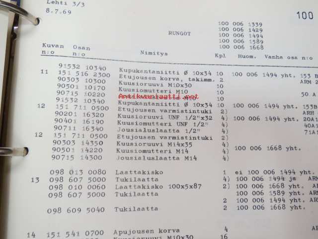 Autot, ajoneuvot - Varaosaluettelot ja kuvastot