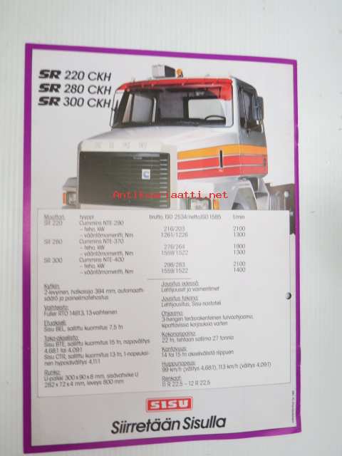 Sisu SR-mallisto -myyntiesite, kannessa leimaus; "Auto-Vaano Ky"