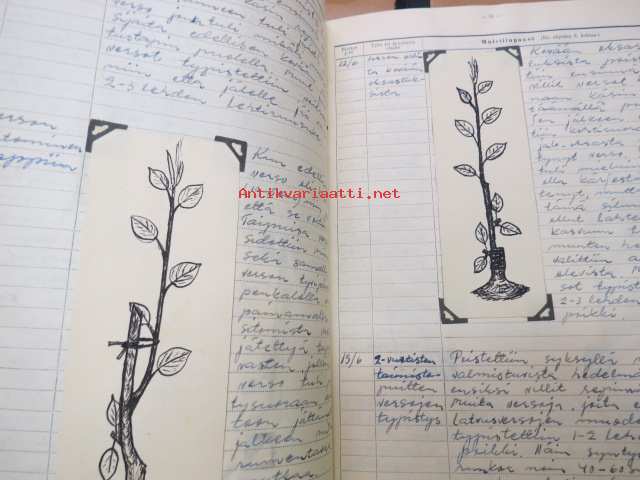 Puutarhaharjoittelukirja 4 kpl - näitä pidetty ammattiopintoihn liittyen Lepaa - Harviala, Kauppapuutarha Vakkuri - Hankkijan Keskustaimisto