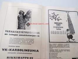 | Saatavilla | 1 kpl | | Julkaisuvuosi | 1964 | | Sivuja | 32 | | Kunto | K2 | | Sidonta/painoasu | Nidottu (pehmeäk.) | | Kielet | Suomi |
