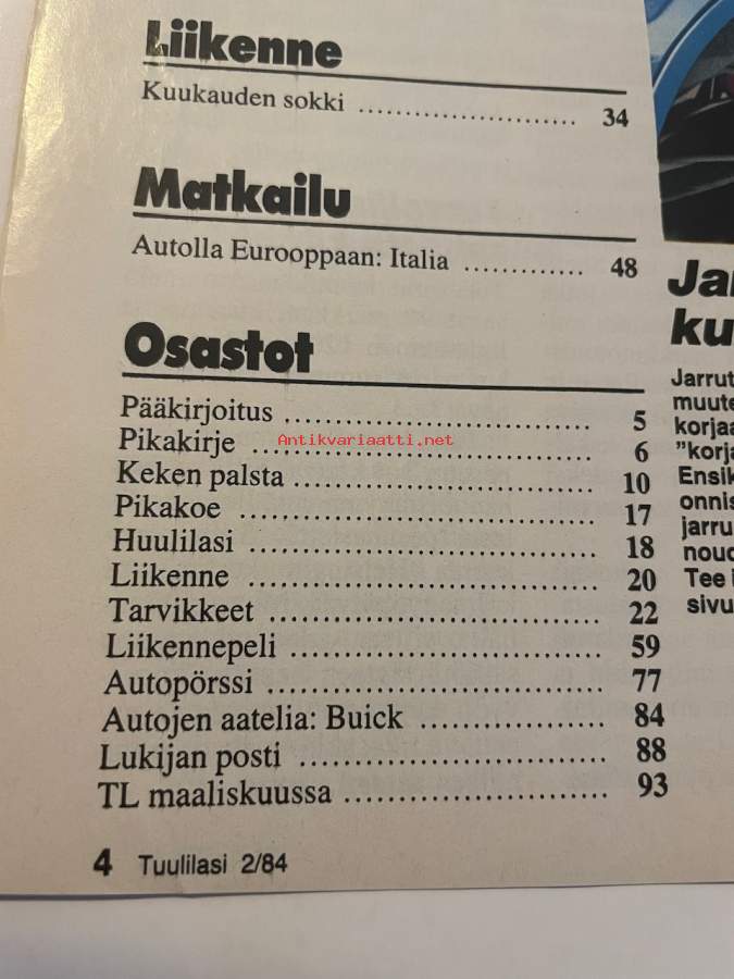 | Saatavilla | 5 kpl | | Julkaisuvuosi | 1984 | | Sivuja | 96 | | Kunto | K3 | | Sidonta/painoasu | Lehti | | Kielet | Suomi |