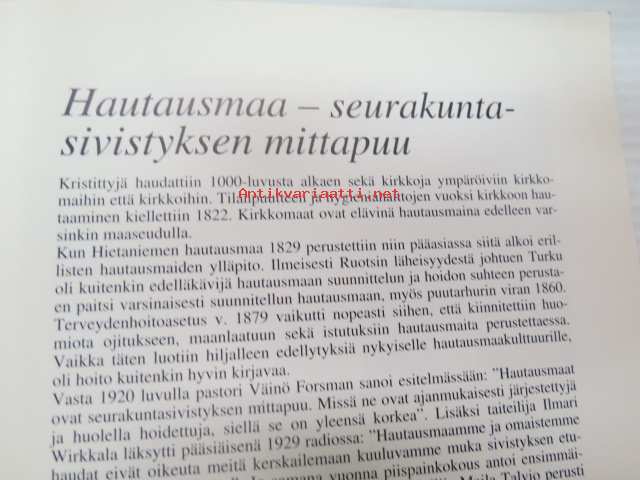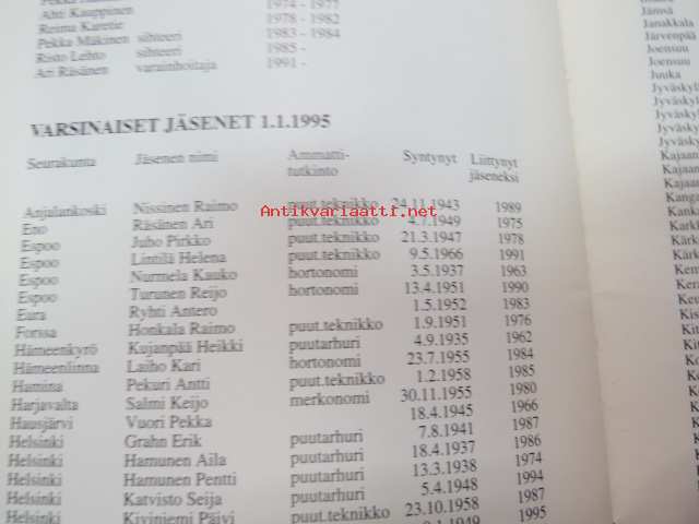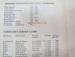 | Saatavilla | 1 kpl | | Julkaisuvuosi | 1995 | | Sivuja | 40 | | Painos | 1. | | Kunto | K2 | | Sidonta/painoasu | Nidottu (pehmeäk.) | | Kielet | Suomi |