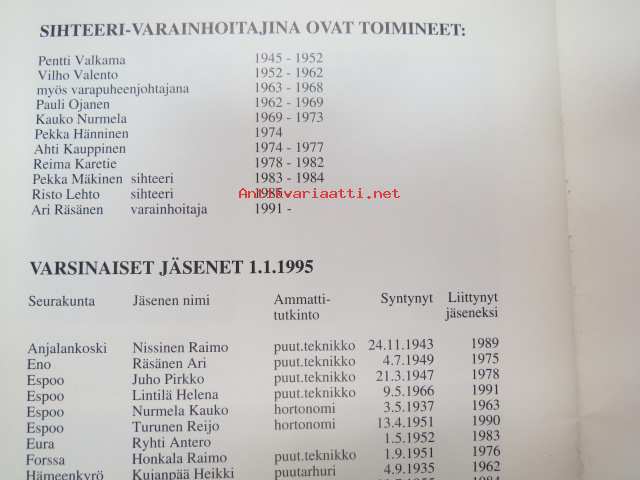 Seurakuntapuutarhurit ry 50 vuotta 1945-1995, sisältää jäsenmatrikkelin vuoden 1995 tilanteen mukaan