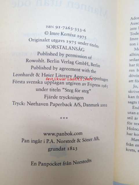 Imre Kertész, Norstedt, 200211 x 18 cm.