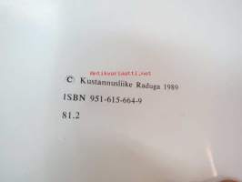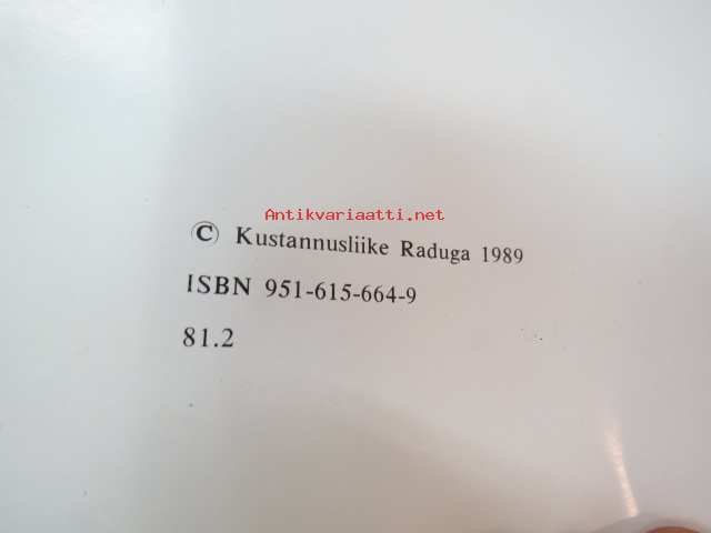 | Saatavilla | 1 kpl | | Julkaisuvuosi | 1989 | | Sivuja | 114 | | Painos | 1. | | Kunto | K3 | | Sidonta/painoasu | Kuvitettu kovakantinen | | ISBN | 951-615-664-9 | | Kielet | Suomi |