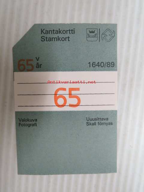 Helsinki / Liikennelaitos / HKL - HST / YTV - 1989 Kantakortti 65 -matkalippu
