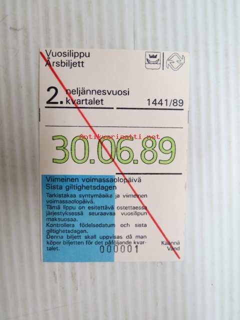 Helsinki / Liikennelaitos / HKL - HST / YTV - 1989 Vuosilippu 2. neljännesvuosi Punaraita nr 000001 -matkalippu