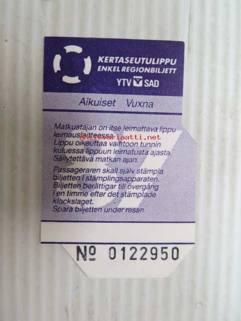Helsinki / Liikennelaitos / HKL - HST / YTV - 1987 Kertaseutulippu Aikuiset nr 0122950 -matkalippu